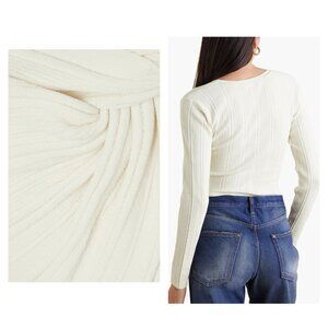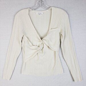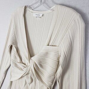 FRAME Twist Front Ribbed Jersey Top Pullover in Ecru size M Stretch