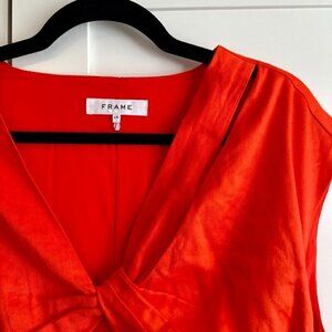 45% Lyocell, 36% Linen, 17% Cotton 2% Spandex, in Red.