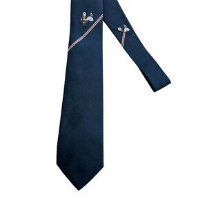 This vintage navy blue tie features a distinctive Canadian Inuit igloo pattern with elegant stripes, perfect for adding a touch of sophistication to any outfit. Ideal for collectors or those seeking a unique accessory.