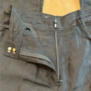 FRAME Wide Leg Linen Blend Trousers High Rise Black Size 8