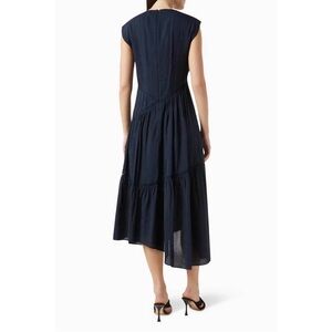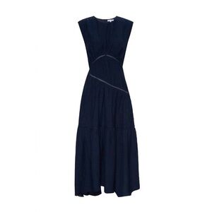 FRAME Women's Apothea Gathered Seam Lace Inset Dress Navy Linen Blend Size XS