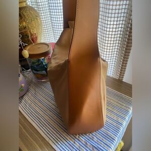 Light brown shoulder bag with medium brown strap