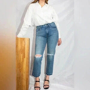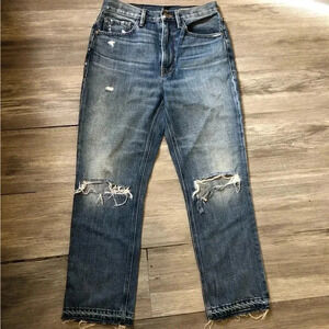 FRAME Women’s Jeans 24 Heritage Le Piper Straight Crop Raw Hem Distressed Boho