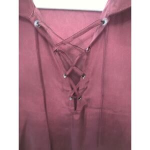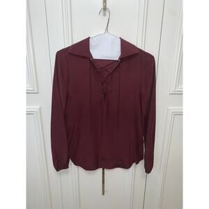 FRAME Women's Lace-Up Silk Blouse Red Collared Long Sleeve XS