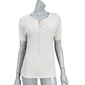 FRAME Women's Le Crochet Lace up Neck Blouse in Beige Size Small