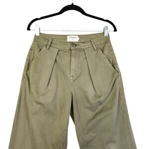 FRAME Womens Le Service Wide Leg Pants Size 26 Militia Green Pleated Utilitarian