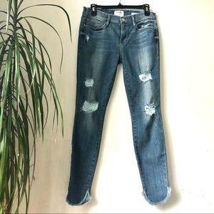 FRAME Women’s Mid Wash 9 inches Rise Frayed Hem Distressed Jeans Size 28