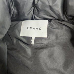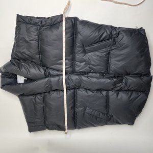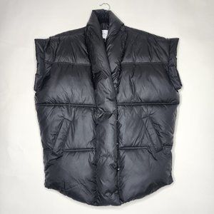 FRAME Womens Puffer Vest Jacket Sleeveless Oversized Shoulders Wide Pad Black S