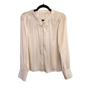 FRAME- Women’s Shirred Silk Neck-Tie Blouse in Off White, Size Large