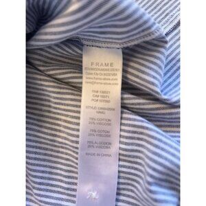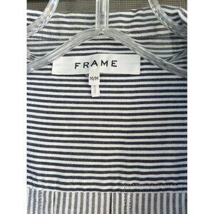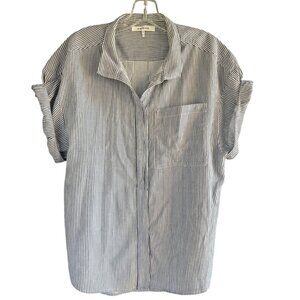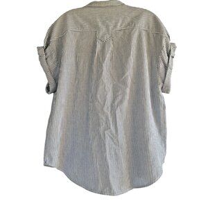 FRAME Women's Striped Button Up Rolled Sleeve Top- Short Sleeve-Medium