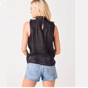 FRAME Women's Embroidered High-Neck Sleeveless Blouse Black Size XS NWOT