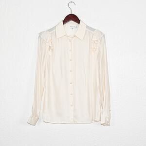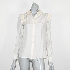 FRAME XS 100% Silk Ruffle trim Blouse in off white / beige Long Sleeve