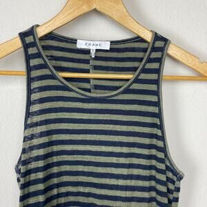 FRAME XS Green Blue Striped Linen Tank Top Lightweight Sleeveless Chic