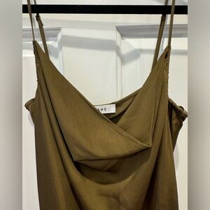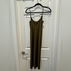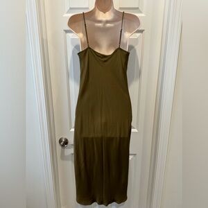 FRAME slip dress silk denim olive green dress with spaghetti straps
