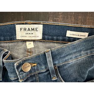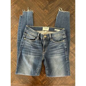 FRAME Denim Le Skinny de Jeanne Dark Wash High Low Cut Out Ankle Jeans Size 26. In good Preowned condition.