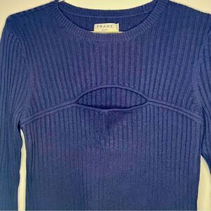 Keyhole detail. Ribbed long sleeve shirt. Knit shirt. Merino wool blend. Cut out elbow detail.
