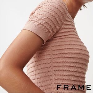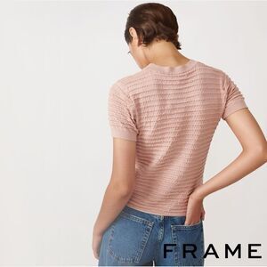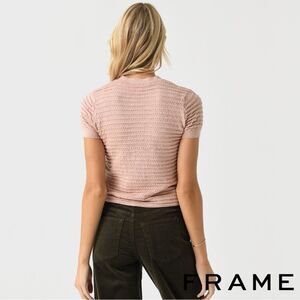 FRAME **NWT** Pointelle Smocked Short Sleeve Sweater Top Peony Pink