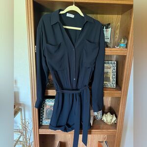 Frame shirt button down long sleeve navy blue tie romper. Excellent condition.