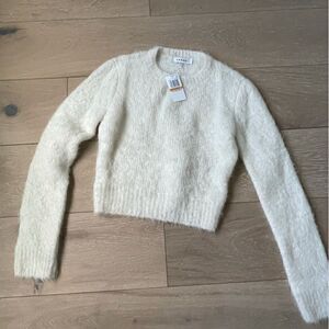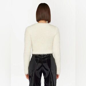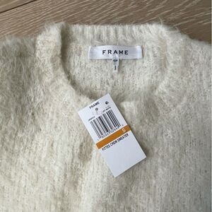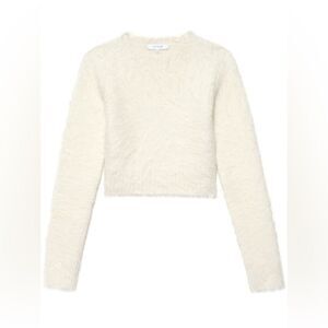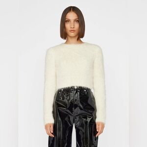 cropped alpaca-blend jumper from FRAME featuring cream white, alpaca wool-blend, knitted construction, brushed finish, cropped, round neck, long sleeves, straight hem and ribbed trim.