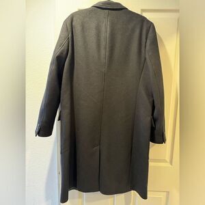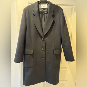 The timeless cut of FRAME's black East Side overcoat, made from pressed wool cloth, is designed in a loose, boxy fit ideal for effortless layering.