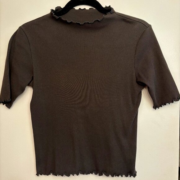 Grey FRAMeWORK Ruffled Ribbed Mockneck TShirt. Size Small. Excellent used condition. 100% cotton.