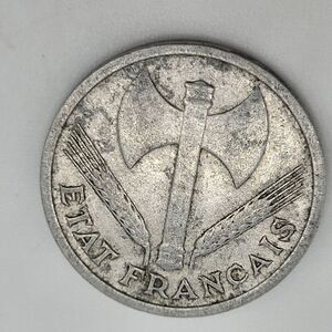 FRANCE 1 FRANC 1942 Travail Famille patrie French coin Francais