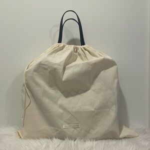 Brand new Frances Valentine, New York tag tennis bag. There are a few spots on the bag shown in the pictures that looked to be slightly yellow discolored. However, this was purchased brand new from directly from Francis Valentin and this bag has not been used so it was received that way from Francis Valentin. Interior has two large side zip pockets with three large slide pockets. Interior is pinstripe, black and white lining and gold hardware. This does include the dust bag as shown in the photos. Please ask me any questions and see my other items.