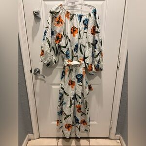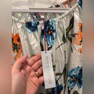 Frances Valentine’s Bliss Maxi in Iris. This maxi length dress on cotton poplin can be worn belted or not and has a dramatic balloon sleeve with elastic wrist and neckline. This is one of our favorite prints for summer, it is elegant and can be transitioned from daytime to evening. Elastic wrist and neckline; can be worn off shoulder