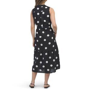 FRANCESCA BETTI Black/White Made In Italy Linen Blend Polka Dot Dress