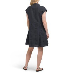 FRANCESCA BETTI Italy Linen Blend Short Sleeve Eyelet Skirt Shirt Mini Dress