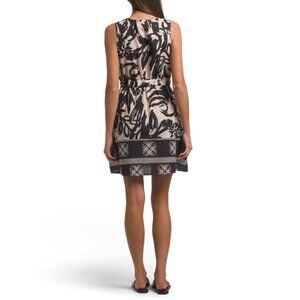 FRANCESCA BETTI Italy Linen Blend Sleeveless Border Print Dress