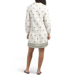 FRANCESCA BETTI Italy Linen Blend Three-quarter Sleeve Border Print Mini Dress