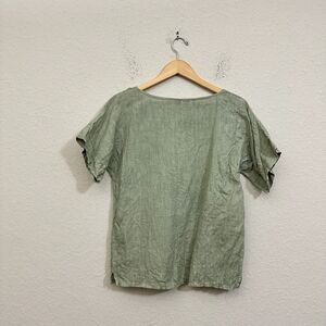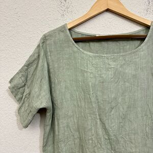 FRANCESCA BETTINI Linen Top w Patch Pockets Sz L Sage Green SS Lagenlook Peasant W9945