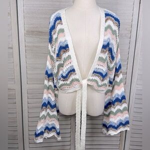 FRANCESCA'S Chevron Stripe Trumpet Sleeve Tie Front Cropped Cardigan-Large