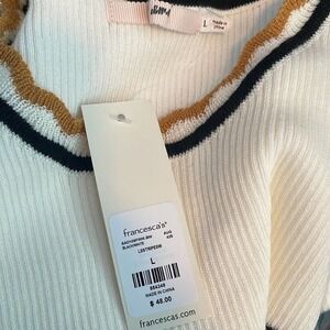 FRANCESCA'S Fitted Striped Sweater Scalloped Edges Cream/Black/Mustard Small