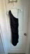 Black, ruched, double-lined, one-shoulder, body con, midi dress. Stretches to slip on, this sexy LBD is perfect to dress up with heels and jewelry for a night out.