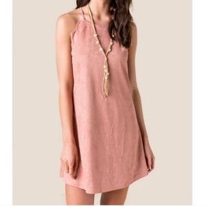 FRANCESCAS SCALLOPED FAUX SUEDE MUTED ROSE PINK DRESS ROMANTIC FEMININE DAINTY