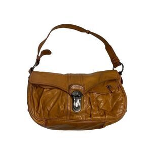 FRANCESCO BIASIA Saddle Style Handbag Mustard Color 14X5.5X7,Genuine Leather