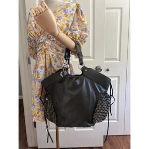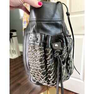 FRANCISCO BIASA Military Green Leather Woven Drawstring Extra Large Purse Tote