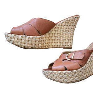 Beautiful Leather and Straw Espadrille Wedge Platform Sandal