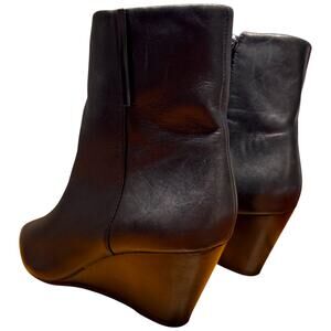 FRANCO SARTO Athens Women's 7M Black Leather Booties Wedge Heel Pointed Toe