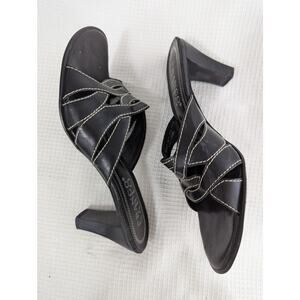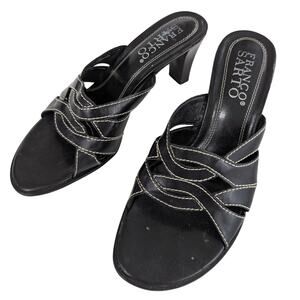 FRANCO SARTO! BLACK LEATHER WOVEN FRONT CONTRAST STITCHED SANDALS, HEELS!SZ 7.5M