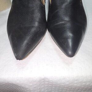 FRANCO SARTO BLACK PUMP WITH WEDGED TORTOISE HEEL LEATHER UPPER WOMENS SIZE 8.5