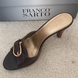 FRANCO SARTO (NORDSTROM) Brown Leather Heels with gold buckle. 3 1/2 inch heel. Very comfortable. Excellent Condition, only used A few times! Comes with the original box and the Nordstrom tag is on the box. ๐๐๐ผ