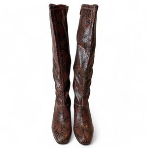 FRANCO SARTO Brown Snakeskin Tribute Toe Block Heel Heeled Boots, NWT. Size 8