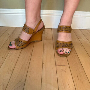 FRANCO SARTO Cut Out Leather Wedge Heels - 7 1/2 M