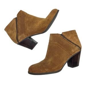 FRANCO SARTO Domino Suede Ankle Boots Booties Brown Cognac Size 8.5
