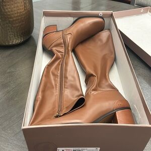 A stunning, artfully crafted knee-high boot with endless appeal, designed at the hands of Italian craftsman Gionata Pagni. Stretch leather upper, size zip and a square toe elevates these boots for women. Eco-conscious linings with soft + sustainable comfort. 16.14 inch knee high boot height, 9.45 inch circumference. 2.50 inch block heel.