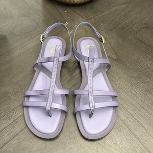 A lightly cushioned footbed adds extra comfort to a strappy sandal that's both breezy and sophisticated.