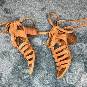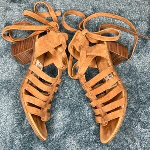 FRANCO SARTO Harmon Tan Suede Lace-Up Block Heels Size 8